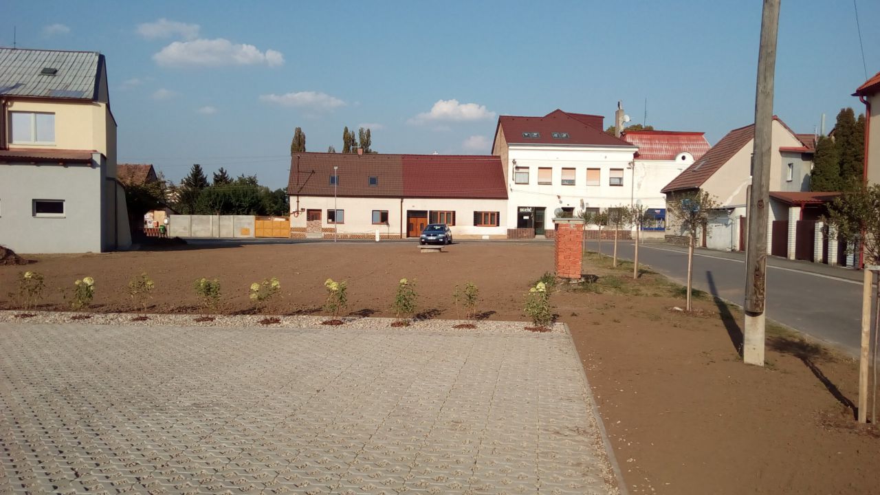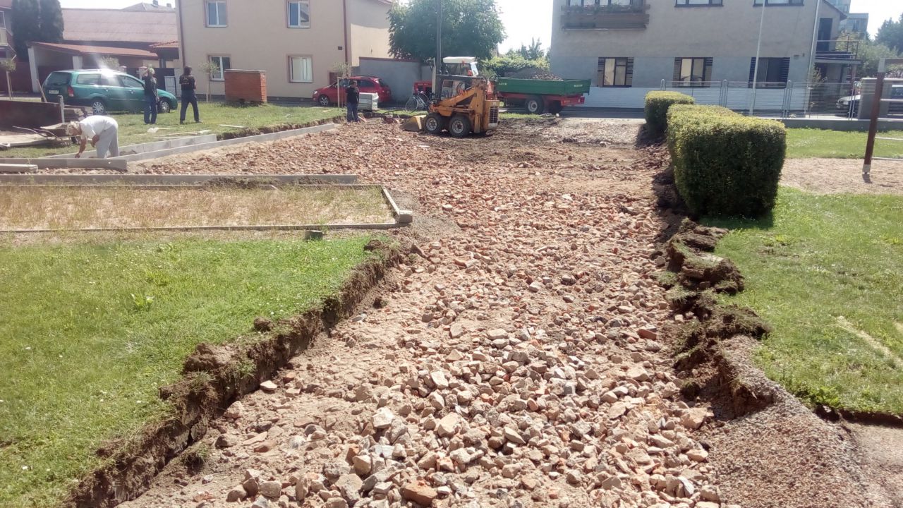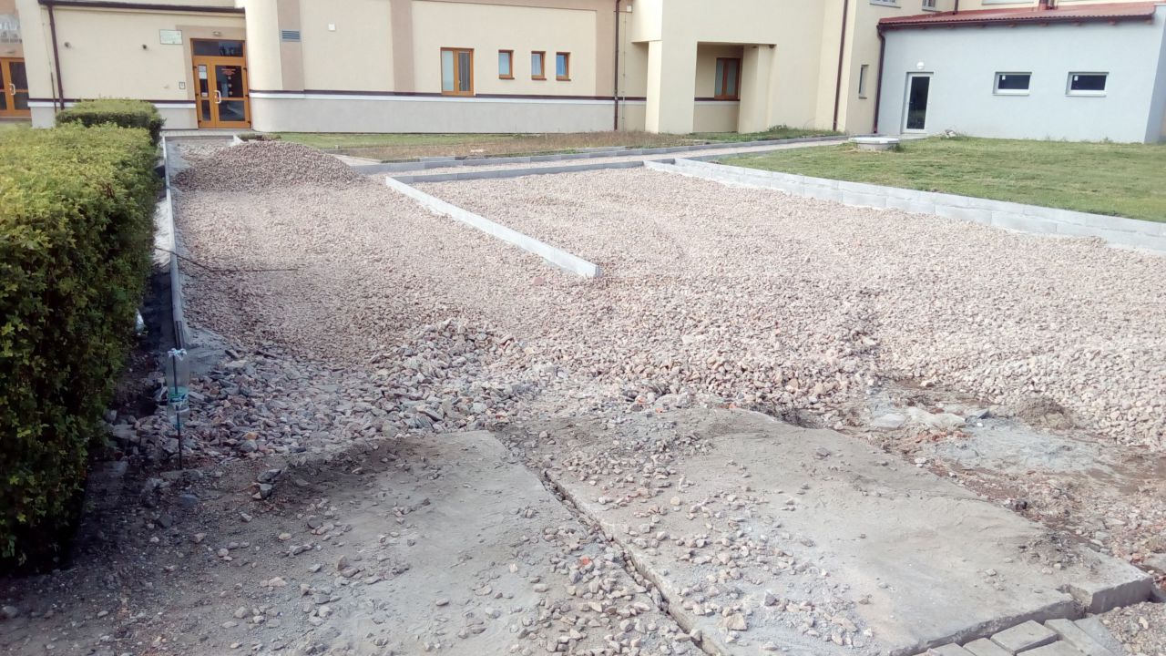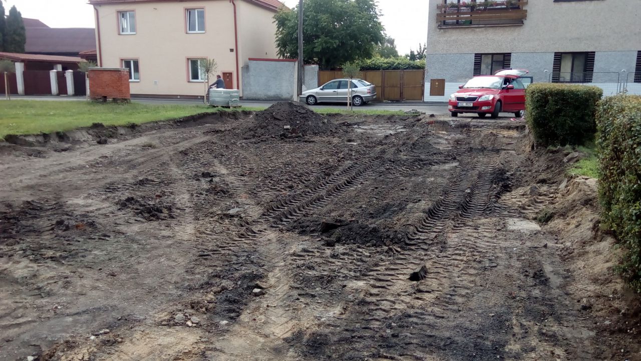 Výstavba parkovací plochy před budovou bowlingu