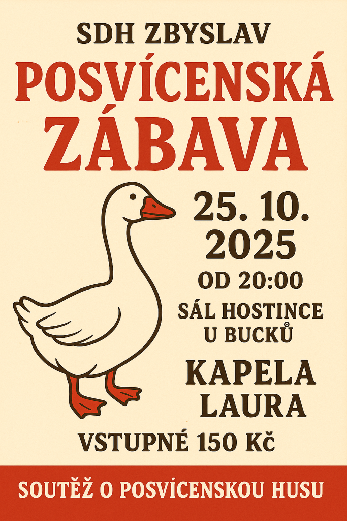 Posvícenská zábava dne 25.10.2025 od 20.00 hod. ve Zbyslavi.